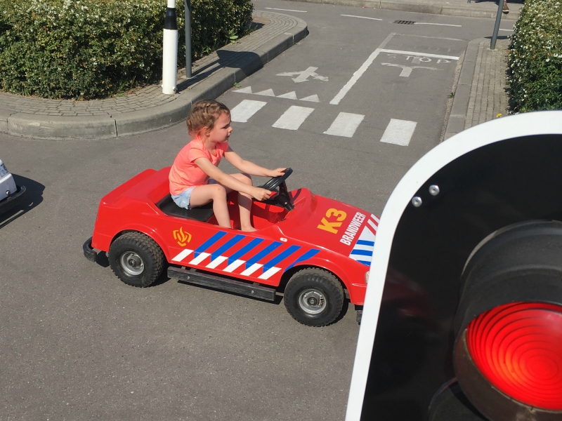 Het zonnetje scheen alsof het hoog zomer was en we hebben buiten dan ook heerlijk genoten van de waterfonteinen, brandjes blussen en het rijden in de K3 politie en brandweer autootjes.
